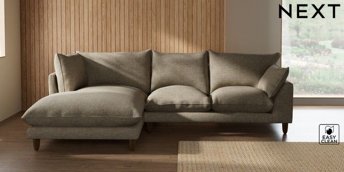 7.2.10 Noa Deep Relaxed Sit Medium Corner Chaise - Left Hand Woven Chenille Easy Clean Mid Natural High Leg - Light | Made Click here to use our website with more accessibility support, for example screen readers