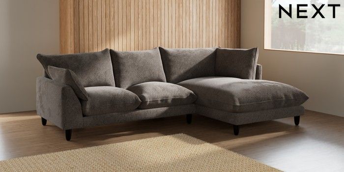 7.2.10 Noa Deep Relaxed Sit Medium Corner Chaise - Right Hand Chunky Chenille Mink Brown High Leg - Dark | Made Click here to use our website with more accessibility support, for example screen readers