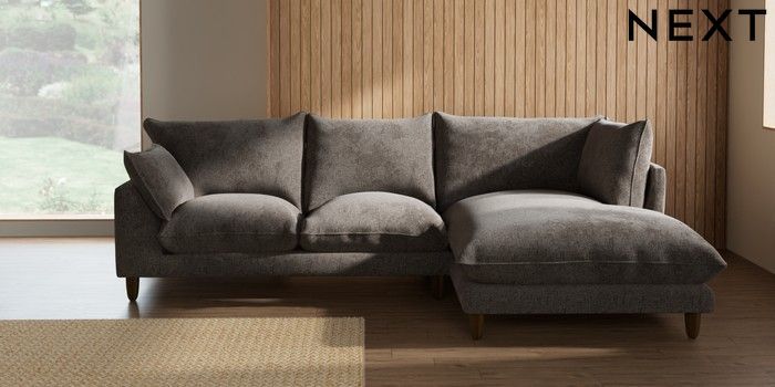 7.2.10 Noa Deep Relaxed Sit Medium Corner Chaise - Right Hand Chunky Chenille Mink Brown High Leg - Mid | Made Click here to use our website with more accessibility support, for example screen readers