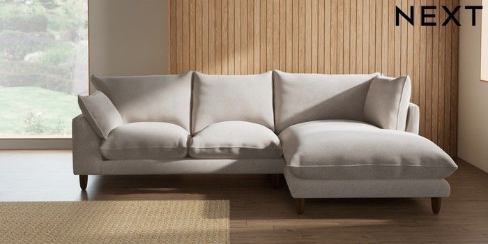 7.2.10 Noa Deep Relaxed Sit Medium Corner Chaise - Right Hand Chunky Chenille Oyster High Leg - Mid | Made Click here to use our website with more accessibility support, for example screen readers