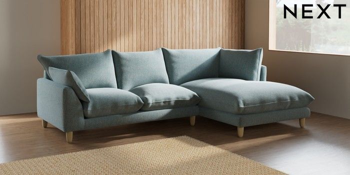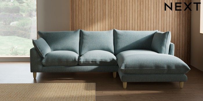 7.2.10 Noa Deep Relaxed Sit Medium Corner Chaise - Right Hand Chunky Marl Mid Blue High Leg - Light | Made Click here to use our website with more accessibility support, for example screen readers