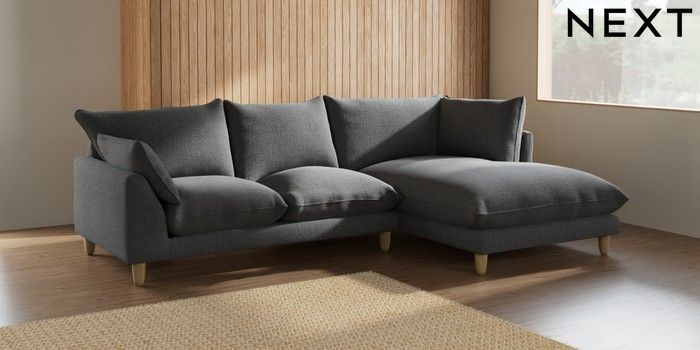 7.2.10 Noa Deep Relaxed Sit Medium Corner Chaise - Right Hand Chunky Texture Dark Grey High Leg - Light | Made Click here to use our website with more accessibility support, for example screen readers