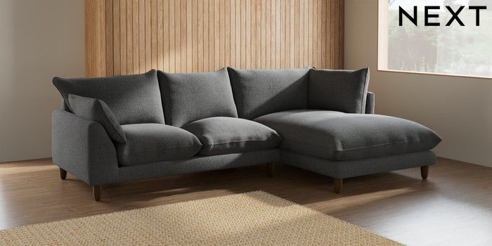 7.2.10 Noa Deep Relaxed Sit Medium Corner Chaise - Right Hand Chunky Texture Dark Grey High Leg - Mid | Made Click here to use our website with more accessibility support, for example screen readers