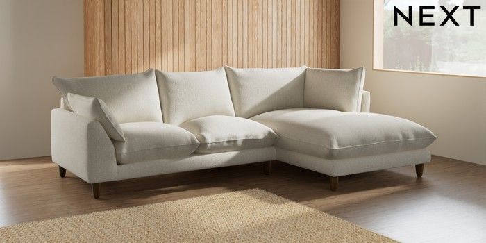 7.2.10 Noa Deep Relaxed Sit Medium Corner Chaise - Right Hand Chunky Texture Oyster High Leg - Mid | Made Click here to use our website with more accessibility support, for example screen readers