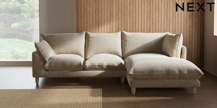 7.2.10 Noa Deep Relaxed Sit Medium Corner Chaise - Right Hand Chunky Weave Cream High Leg - Light | Made Click here to use our website with more accessibility support, for example screen readers