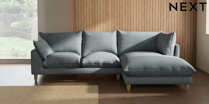 7.2.10 Noa Deep Relaxed Sit Medium Corner Chaise - Right Hand Chunky Weave Mid Blue High Leg - Light | Made Click here to use our website with more accessibility support, for example screen readers