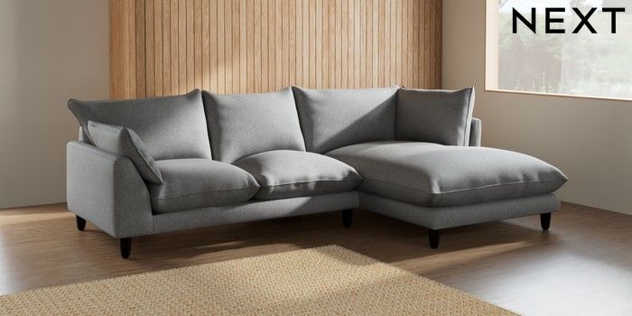 7.2.10 Noa Deep Relaxed Sit Medium Corner Chaise - Right Hand Chunky Weave Mid Grey High Leg - Dark | Made Click here to use our website with more accessibility support, for example screen readers