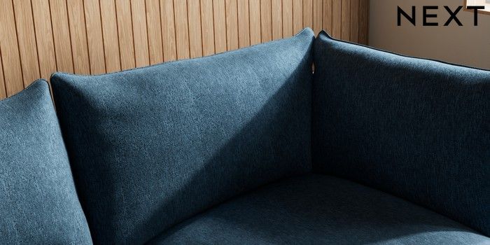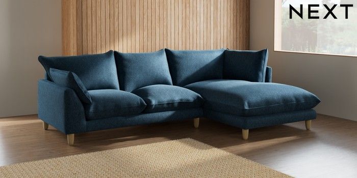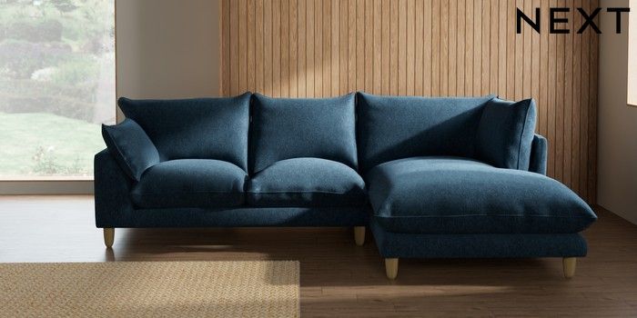 7.2.10 Noa Deep Relaxed Sit Medium Corner Chaise - Right Hand Cotswold Chenille Dark Blue High Leg - Light | Made Click here to use our website with more accessibility support, for example screen readers