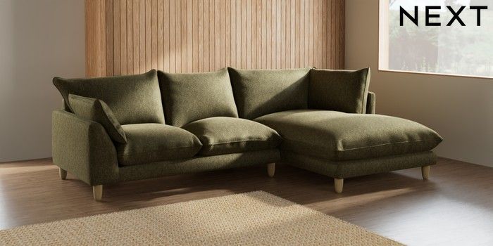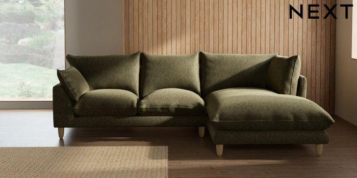 7.2.10 Noa Deep Relaxed Sit Medium Corner Chaise - Right Hand Cotswold Chenille Dark Green High Leg - Light | Made Click here to use our website with more accessibility support, for example screen readers