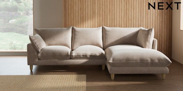 7.2.10 Noa Deep Relaxed Sit Medium Corner Chaise - Right Hand Cotswold Chenille Light Natural High Leg - Light | Made Click here to use our website with more accessibility support, for example screen readers