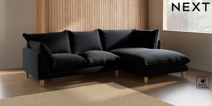 7.2.10 Noa Deep Relaxed Sit Medium Corner Chaise - Right Hand Fine Chenille Easy Clean Black High Leg - Light | Made Click here to use our website with more accessibility support, for example screen readers