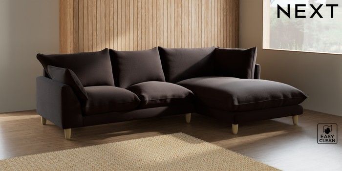 7.2.10 Noa Deep Relaxed Sit Medium Corner Chaise - Right Hand Fine Chenille Easy Clean Chocolate Brown High Leg - Light | Made Click here to use our website with more accessibility support, for example screen readers