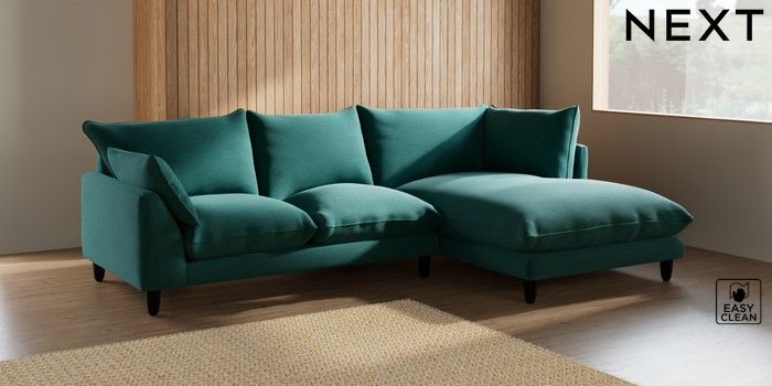 7.2.10 Noa Deep Relaxed Sit Medium Corner Chaise - Right Hand Fine Chenille Easy Clean Dark Juniper Green High Leg - Dark | Made Click here to use our website with more accessibility support, for example screen readers