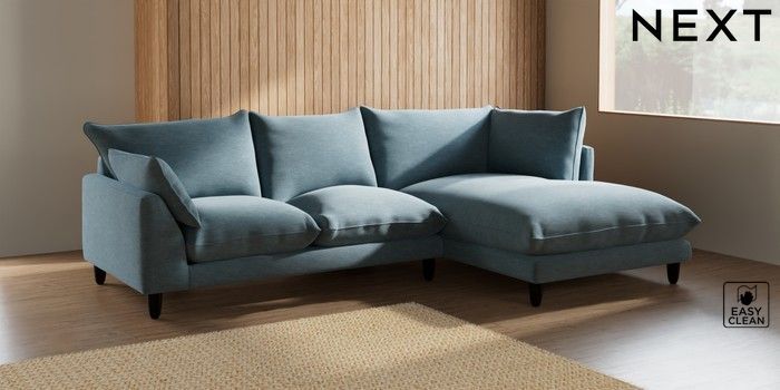 7.2.10 Noa Deep Relaxed Sit Medium Corner Chaise - Right Hand Fine Chenille Easy Clean Mid Blue High Leg - Dark | Made Click here to use our website with more accessibility support, for example screen readers