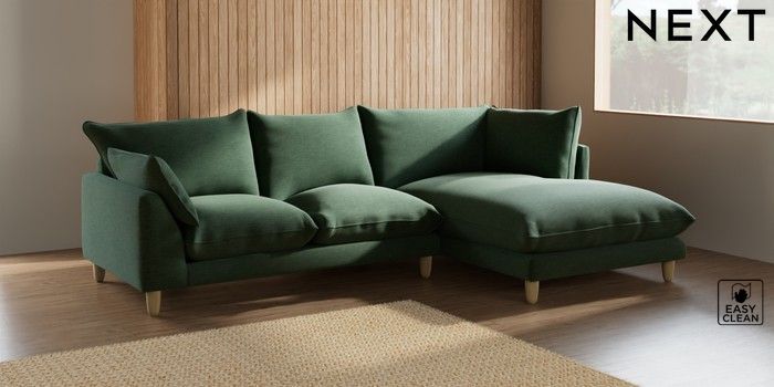 7.2.10 Noa Deep Relaxed Sit Medium Corner Chaise - Right Hand Fine Chenille Easy Clean Mid Khaki Green High Leg - Light | Made Click here to use our website with more accessibility support, for example screen readers