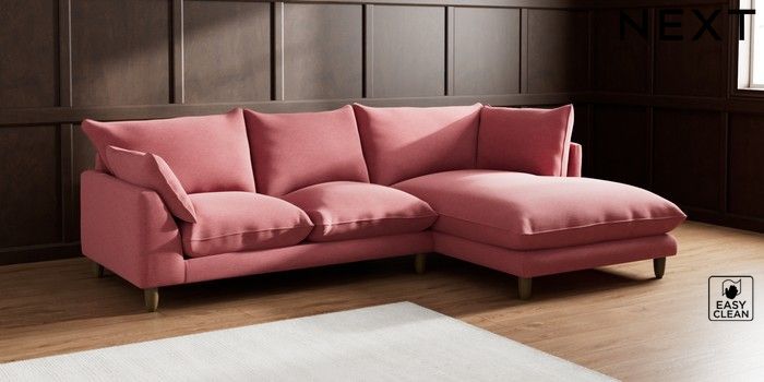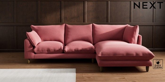 7.2.10 Noa Deep Relaxed Sit Medium Corner Chaise - Right Hand Fine Chenille Easy Clean Mid Pink High Leg - Mid | Made Click here to use our website with more accessibility support, for example screen readers
