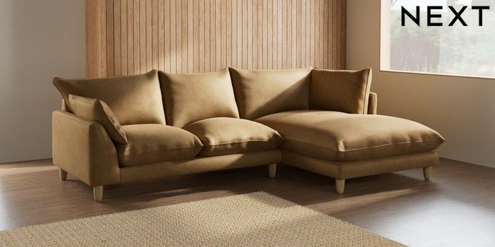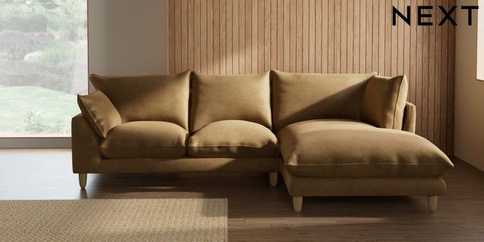 7.2.10 Noa Deep Relaxed Sit Medium Corner Chaise - Right Hand Luxe Chenille Honey Yellow High Leg - Light | Made Click here to use our website with more accessibility support, for example screen readers