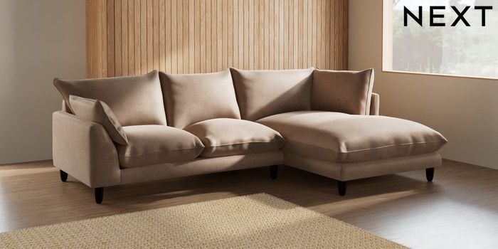 7.2.10 Noa Deep Relaxed Sit Medium Corner Chaise - Right Hand Luxe Chenille Mid Natural High Leg - Dark | Made Click here to use our website with more accessibility support, for example screen readers