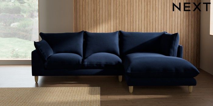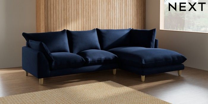 7.2.10 Noa Deep Relaxed Sit Medium Corner Chaise - Right Hand Luxe Chenille Navy Blue High Leg - Light | Made Click here to use our website with more accessibility support, for example screen readers