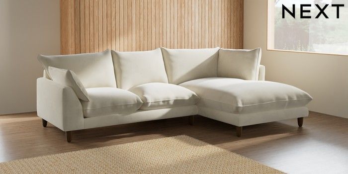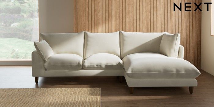 7.2.10 Noa Deep Relaxed Sit Medium Corner Chaise - Right Hand Luxe Chenille Oyster High Leg - Mid | Made Click here to use our website with more accessibility support, for example screen readers