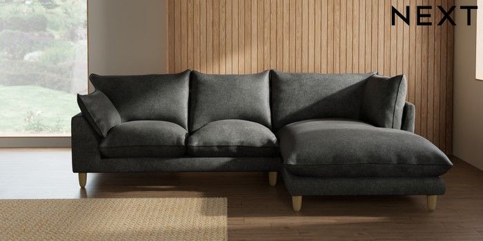7.2.10 Noa Deep Relaxed Sit Medium Corner Chaise - Right Hand Plush Chenille Dark Grey High Leg - Light | Made Click here to use our website with more accessibility support, for example screen readers