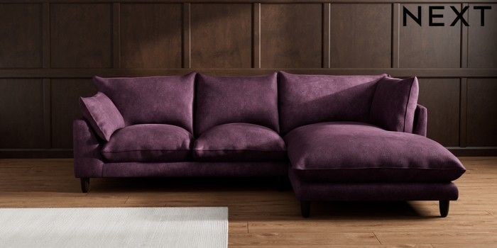 7.2.10 Noa Deep Relaxed Sit Medium Corner Chaise - Right Hand Plush Chenille Dark Plum Purple High Leg - Dark | Made Click here to use our website with more accessibility support, for example screen readers
