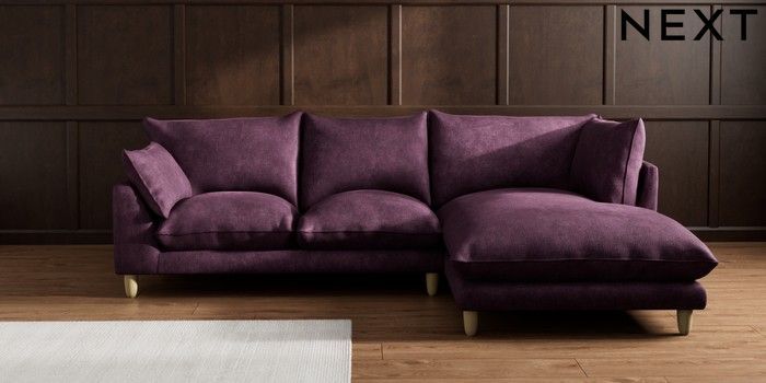 7.2.10 Noa Deep Relaxed Sit Medium Corner Chaise - Right Hand Plush Chenille Dark Plum Purple High Leg - Light | Made Click here to use our website with more accessibility support, for example screen readers