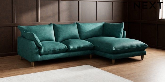 7.2.10 Noa Deep Relaxed Sit Medium Corner Chaise - Right Hand Plush Chenille Dark Teal Green High Leg - Mid | Made Click here to use our website with more accessibility support, for example screen readers