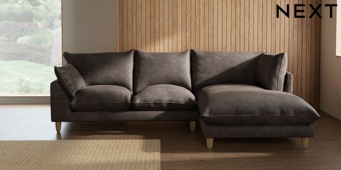 7.2.10 Noa Deep Relaxed Sit Medium Corner Chaise - Right Hand Plush Chenille Mink Brown High Leg - Light | Made Click here to use our website with more accessibility support, for example screen readers