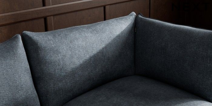 7.2.10 Noa Deep Relaxed Sit Medium Corner Chaise - Right Hand Plush Chenille Slate Blue High Leg - Dark | Made Click here to use our website with more accessibility support, for example screen readers