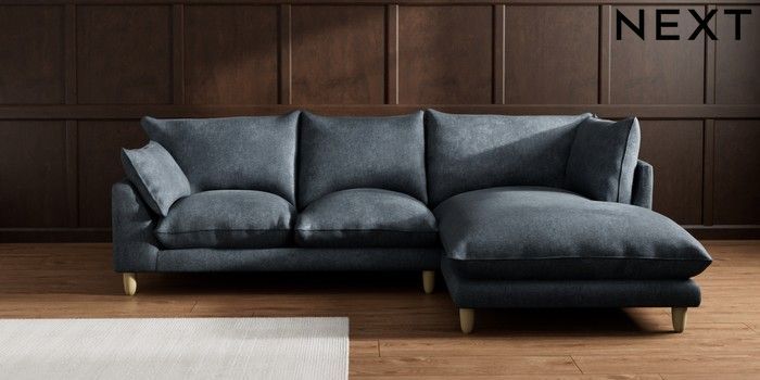 7.2.10 Noa Deep Relaxed Sit Medium Corner Chaise - Right Hand Plush Chenille Slate Blue High Leg - Light | Made Click here to use our website with more accessibility support, for example screen readers