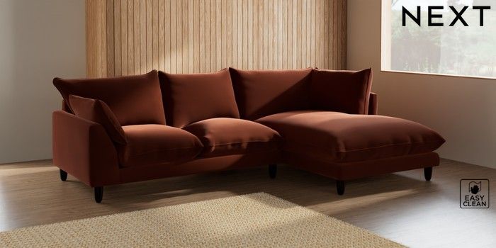 7.2.10 Noa Deep Relaxed Sit Medium Corner Chaise - Right Hand Plush Velvet Easy Clean Ginger Orange High Leg - Dark | Made Click here to use our website with more accessibility support, for example screen readers