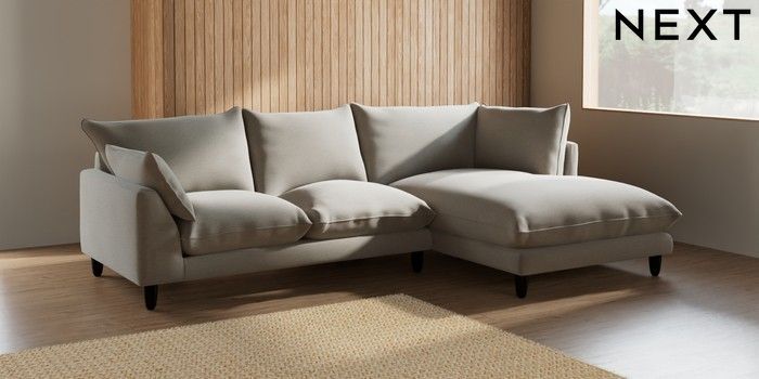 7.2.10 Noa Deep Relaxed Sit Medium Corner Chaise - Right Hand Ripple Chenille Light Natural High Leg - Dark | Made Click here to use our website with more accessibility support, for example screen readers