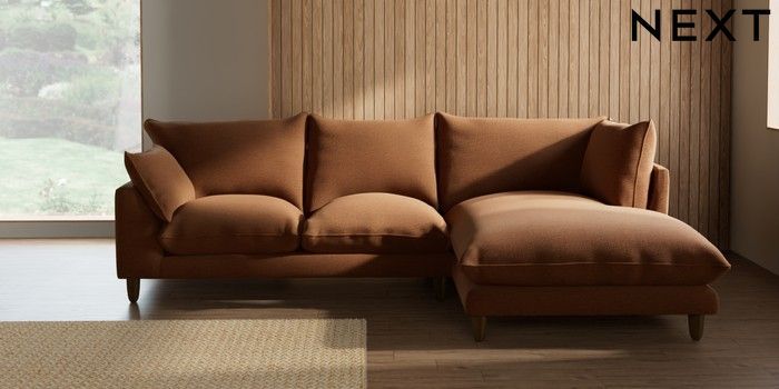 7.2.10 Noa Deep Relaxed Sit Medium Corner Chaise - Right Hand Ripple Chenille Mid Rust Brown High Leg - Mid | Made Click here to use our website with more accessibility support, for example screen readers