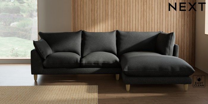 7.2.10 Noa Deep Relaxed Sit Medium Corner Chaise - Right Hand Tweedy Blend Easy Clean Charcoal Grey High Leg - Light | Made Click here to use our website with more accessibility support, for example screen readers
