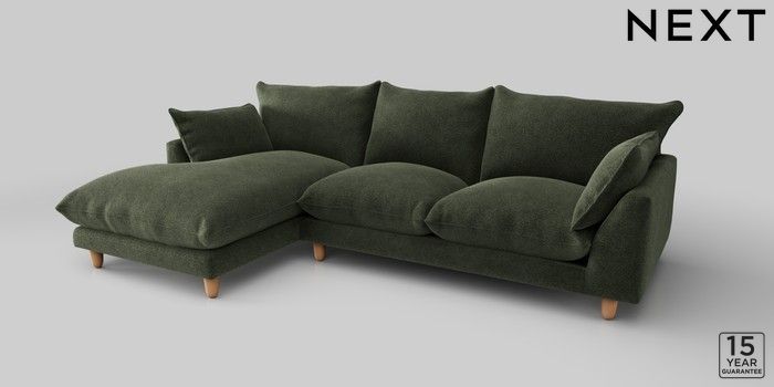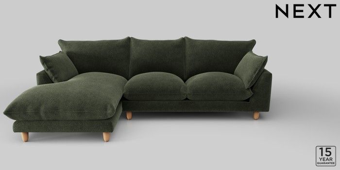 7.2.10 Noa Deep Relaxed Sit Medium Sofa Chaise - Left Hand Boucle Chenille Dark Moss Green High Leg - Light | Made Click here to use our website with more accessibility support, for example screen readers