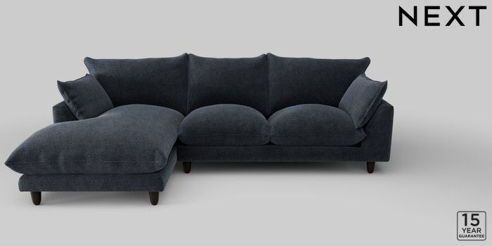 7.2.10 Noa Deep Relaxed Sit Medium Sofa Chaise - Left Hand Boucle Chenille Dark Slate Blue High Leg - Dark | Made Click here to use our website with more accessibility support, for example screen readers