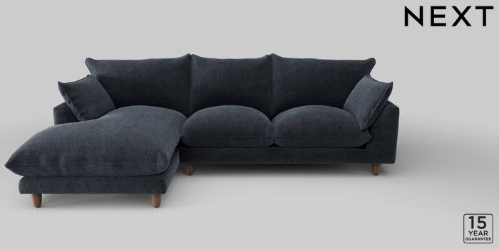 7.2.10 Noa Deep Relaxed Sit Medium Sofa Chaise - Left Hand Boucle Chenille Dark Slate Blue High Leg - Mid | Made Click here to use our website with more accessibility support, for example screen readers