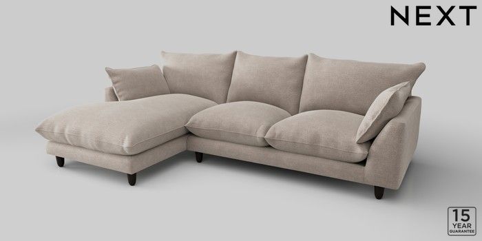 7.2.10 Noa Deep Relaxed Sit Medium Sofa Chaise - Left Hand Boucle Chenille Light Natural High Leg - Dark | Made Click here to use our website with more accessibility support, for example screen readers