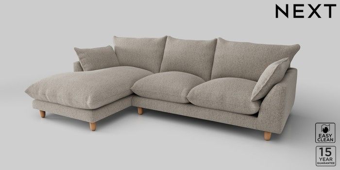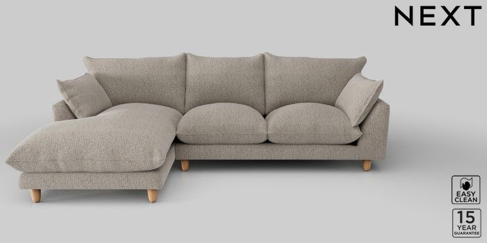 7.2.10 Noa Deep Relaxed Sit Medium Sofa Chaise - Left Hand Chunky Boucle Easy Clean Dove High Leg - Light | Made Click here to use our website with more accessibility support, for example screen readers