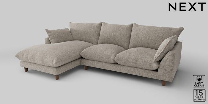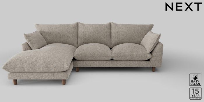 7.2.10 Noa Deep Relaxed Sit Medium Sofa Chaise - Left Hand Chunky Boucle Easy Clean Dove High Leg - Mid | Made Click here to use our website with more accessibility support, for example screen readers