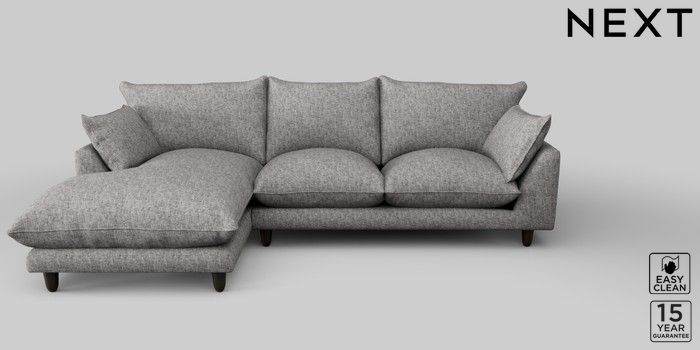 7.2.10 Noa Deep Relaxed Sit Medium Sofa Chaise - Left Hand Chunky Boucle Easy Clean Light Grey High Leg - Dark | Made Click here to use our website with more accessibility support, for example screen readers