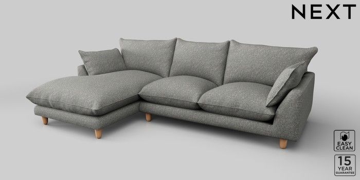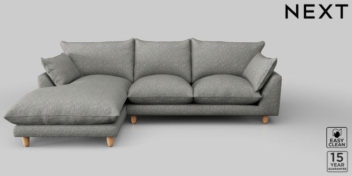 7.2.10 Noa Deep Relaxed Sit Medium Sofa Chaise - Left Hand Chunky Boucle Easy Clean Mid Grey High Leg - Light | Made Click here to use our website with more accessibility support, for example screen readers