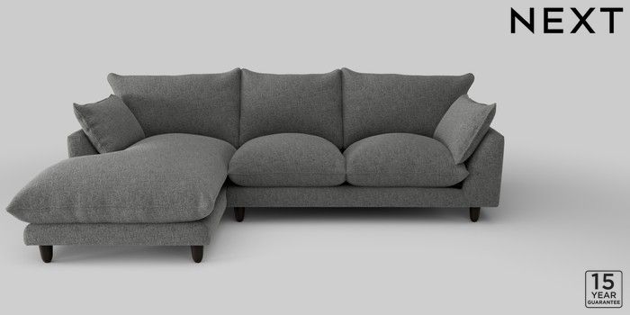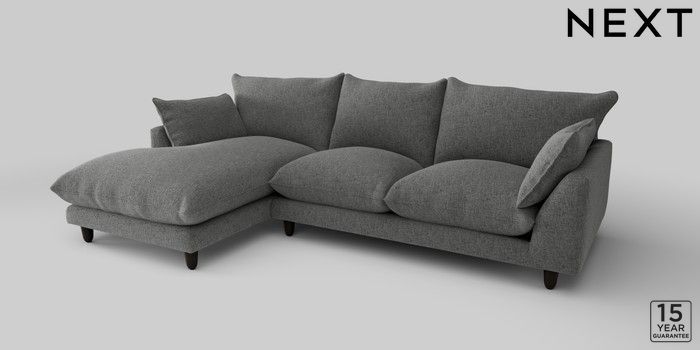 7.2.10 Noa Deep Relaxed Sit Medium Sofa Chaise - Left Hand Chunky Chenille Dark Grey High Leg - Dark | Made Click here to use our website with more accessibility support, for example screen readers