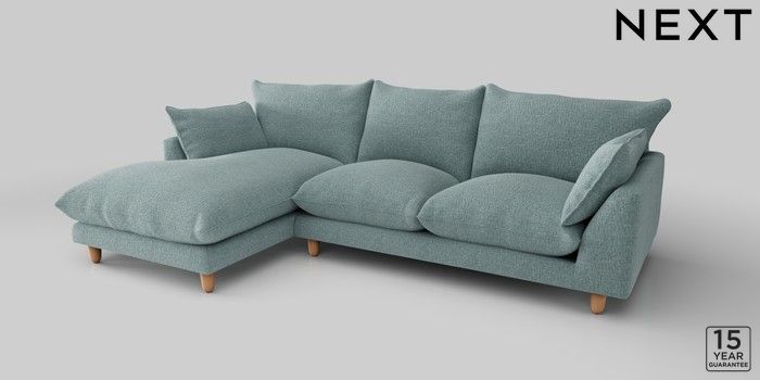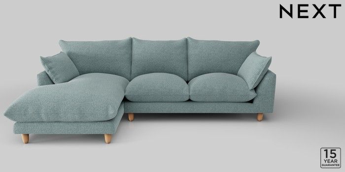 7.2.10 Noa Deep Relaxed Sit Medium Sofa Chaise - Left Hand Chunky Chenille Light Teal Green High Leg - Light | Made Click here to use our website with more accessibility support, for example screen readers