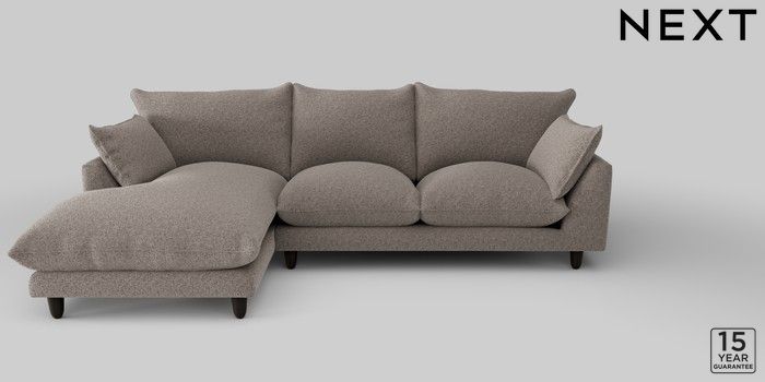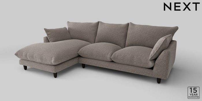 7.2.10 Noa Deep Relaxed Sit Medium Sofa Chaise - Left Hand Chunky Chenille Mink Brown High Leg - Dark | Made Click here to use our website with more accessibility support, for example screen readers