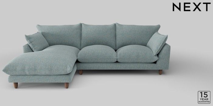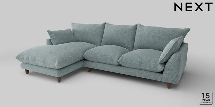 7.2.10 Noa Deep Relaxed Sit Medium Sofa Chaise - Left Hand Chunky Marl Mid Blue High Leg - Mid | Made Click here to use our website with more accessibility support, for example screen readers