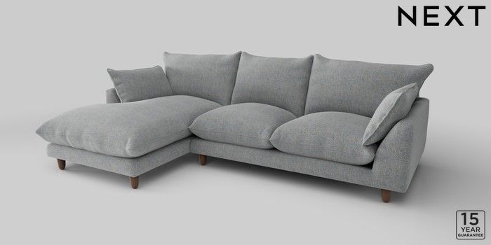 7.2.10 Noa Deep Relaxed Sit Medium Sofa Chaise - Left Hand Chunky Marl Mid Grey High Leg - Mid | Made Click here to use our website with more accessibility support, for example screen readers