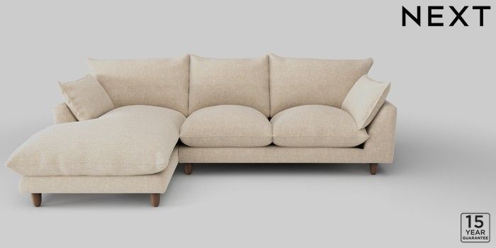 7.2.10 Noa Deep Relaxed Sit Medium Sofa Chaise - Left Hand Chunky Weave Cream High Leg - Mid | Made Click here to use our website with more accessibility support, for example screen readers