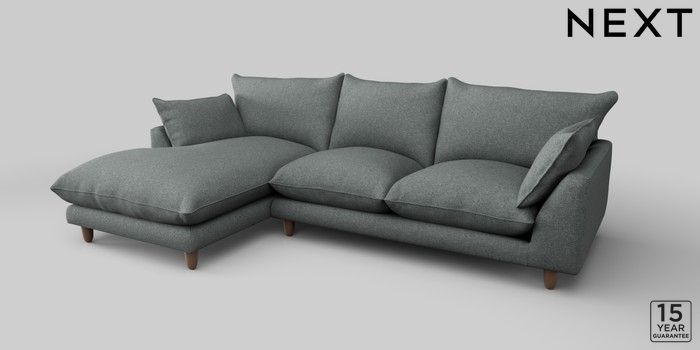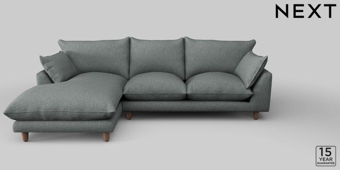 7.2.10 Noa Deep Relaxed Sit Medium Sofa Chaise - Left Hand Chunky Weave Mid Grey High Leg - Mid | Made Click here to use our website with more accessibility support, for example screen readers